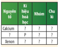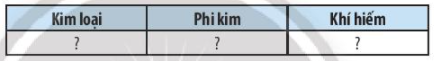 Câu hỏi 4. Cho các nguyên tố sau: Ge, S, Br, Pb, C, Mo, Ba, Ar, Hg. Hãy sắp xếp chúng vào bảng dưới đây: