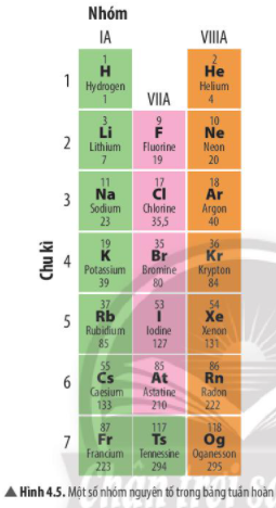Câu hỏi 5. Quan sát Hình 4.5, cho biết những nguyên tố nào có tính chất tương tự nhau.