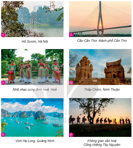 a) Trong những bức ảnh trên, hình ảnh nào là di sản văn hóa? Hình ảnh nào không phải là di sản văn hóa? Hình ảnh nào là di sản văn hóa vật thể? Hình ảnh nào là di sản văn hóa phi vật thể?