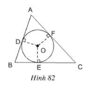 Trên hình 82, tam giác ABC ngoại tiếp đường tròn (O).