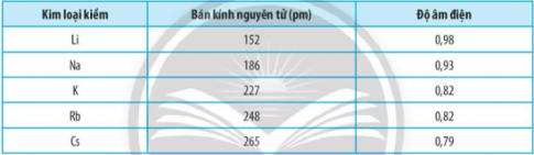 Hãy vẽ đồ thị hoặc biểu đồ với hai đại lượng bán kính nguyên tử và độ âm điện trong bảng bằng số liệu trên. Quan sát và cho biết hai đại lượng này biến thiên như thế nào? Giải thích