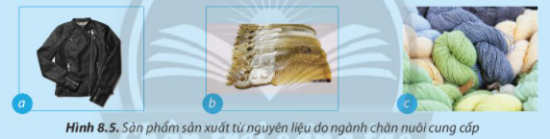 Câu hỏi 1. Nguyên liệu nào của ngành chăn nuôi được dùng để sản xuất các sản phẩm ở Hình 8.5