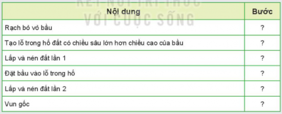 Khám phá: Quan sát Hình 8.1 và xác định các bước theo quy trình trồng rừng bằng cây con có bầu phù hợp với từng nội dung theo mẫu bảng dưới đây: