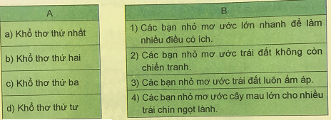 4. Tìm ý chính ở cột B cho mỗi khổ thơ ở cột A:
