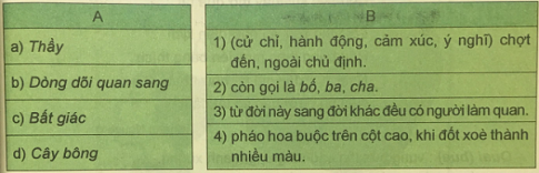 3. Chọn lời giải nghĩa ở cột B phù hợp với mỗi từ ngữ ở cột A (trang 91)