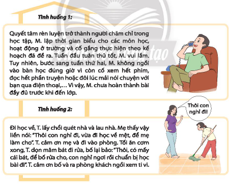2. Nhận xét về hành động của mỗi bạn trong các tình huống sau và chỉ ra những điều chưa đúng khi rèn luyện sự chăm chỉ.