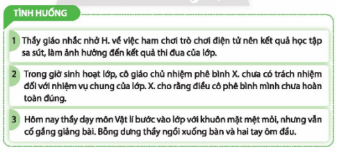 2. Đóng vai thế hiện hành vi phù hợp trong những tình huống sau: