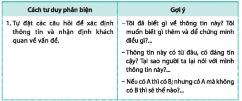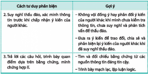 2. Thảo luận về cách tư duy phản biện khi đánh giá sự vật, hiện tượng theo hướng dẫn sau: