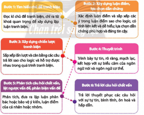 1. Thảo luận về các bước thực hiện tranh biện và xác định các biếu hiện của tư duy phản biện ở mỗi bước.