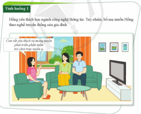 1. Thực hành xin ý kiến tham vấn của thầy cô, các bạn hoặc bố mẹ, người thân về dự định chọn nghề trong tình huống sau: