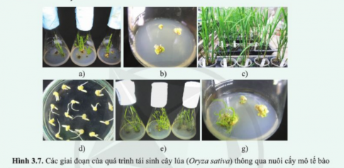 Luyện tập 3. Quan sát các hình 3.7 (a - g) về quá trình tái sinh cây lúa (Oryza sativa) từ nuôi cấy mô tế bào và thực hiện các yêu cầu sau: