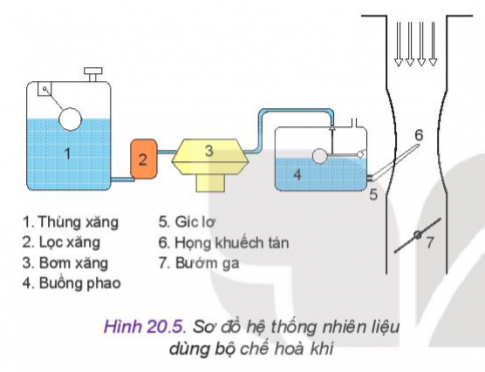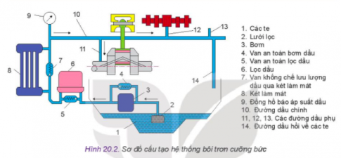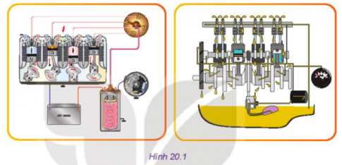 Câu hỏi: Hình 20.1 thể hiện hai trong số các hệ thống chính của động cơ đốt trong. Hãy cho biết tên gọi, nhiệm vụ của hai hệ thống đó.