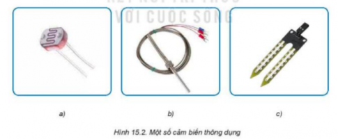 Câu hỏi: Hình 15.2 bao gồm các cảm biến ánh sáng, cảm biến độ ẩm, cảm biến nhiệt độ.