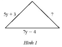 Tam giác trong hình 1 có chu vi bằng (25y - 8) cm. Tìm cạnh chưa biết trong tam giác đó.