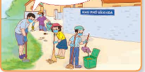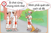 1. Đi chơi cùng chúng mình nhé! Mình phải quét sân sạch sẽ đã.