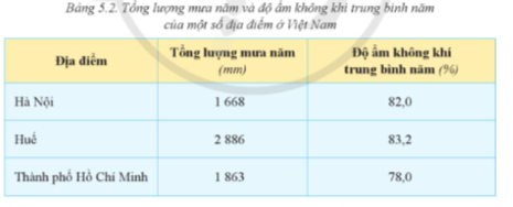 Câu hỏi: Đọc thông tin và dựa vào bảng 5.2, hãy trình bày về tính chất ẩm của khí hậu Việt Nam.
