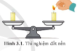 Đặt hai cây nến trên đĩa cân cân ở vị trí thăng bằng. Nếu đốt cháy một cây nến, sau một thời gian, cân có cân bằng không? Giải thích.