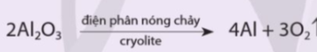 Trong công nghiệp, nhôm được sản xuất từ Aluminium Oxide (Al2O3) theo phương trình hóa học sau