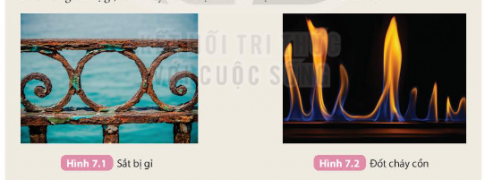 Phản ứng sắt bị gỉ. đốt cháy cồn được mình họa ở các Hình 7.1 và 7.2