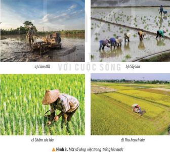 2. Quan sát hình 3, em hãy kể tên một số công việc phải làm khi trồng lúa nước.