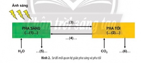 Câu 5: Bổ sung thông tin vào Hình 2 để hoàn thành sơ đồ về mối quan hệ giữa pha sáng và pha tối của quá trình quang hợp.