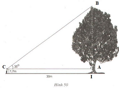 Tính chiều cao của cây trong hình 50 ( làm tròn đến đề - xi – mét ) .