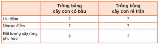 2. Hoàn thành theo mẫu bảng dưới đây về các phương pháp trồng rừng