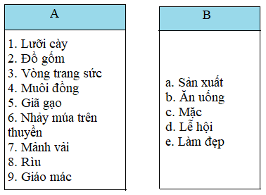 4. Chọn và điền nội dung dưới đây vào bảng sau cho phù hợp