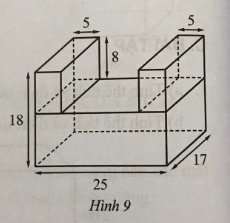 Bài 8: Hình 9 được ghép bởi 3 hình hộp chữ nhật. Tính thể tích của hình được ghép với các số đo trên hình tính theo đơn vị mét.