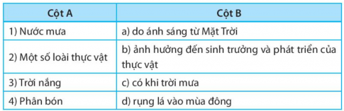1.2. Hãy kết nối các thông tin ở cột A với cột B tạo thành sự liên kết giữa sự vật với hiện tượng hoặc hiện tượng với hiện tượng.