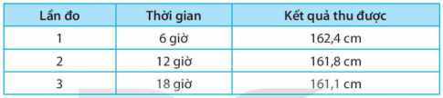 1.6. Khi đo chiều cao của một người ở các thời điểm khác nhau trong ngày, kết quả đo được ghi lại trong Bảng 1. Em hãy nhận xét và giải thích về kết quả thu được.