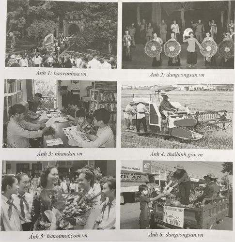 Câu 6. Hành vị, biểu hiện nào trong những hình ảnh dưới đây là góp phân giữ gìn truyền thống quê hương? Em hãy viết lời giải thích vì sao theo từng ảnh.