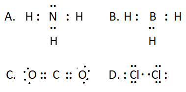 10.6. Phân tử nào sau đây có các nguyên tử đều đã đạt cấu hình electron bão hoà theo quy tắc octet?