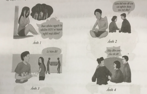 2. Em hãy quan sát và cho biết mỗi hình ảnh dưới đây nói về hậu quả nào của tệ nạn xã hội.