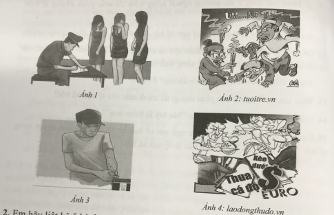 1. Em hãy quan sát các hình ảnh dưới đây và cho biết hành vi nào của các chủ thể vi phạm quy định của pháp luật về phòng, chống tệ nạn xã hội?