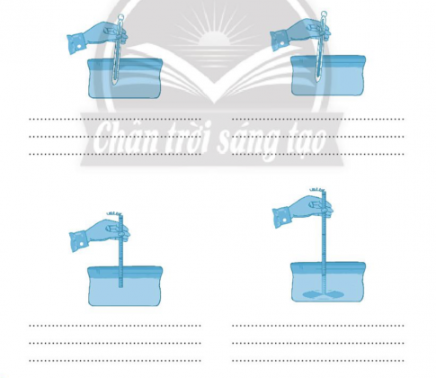 14. Hãy mô tả thao tác kĩ thuật trong quy trình đo nhiệt độ, độ trong của nước nuôi thuỷ sản thể hiện trong mỗi hình.
