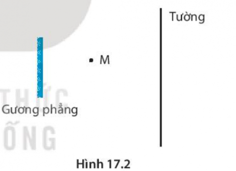17.4. Một người đặt mắt tại điểm M trước một gương phẳng để quan sát ảnh của bức tường phía sau lưng (Hình 17.2).