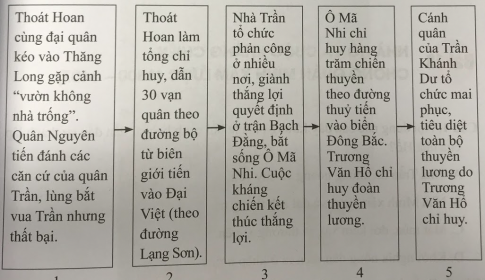 Câu 9. Sắp xếp lại cho đúng diễn biến cuộc kháng chiến lần thứ ba, chống quân xâm lược Nguyên của quân nhà Trần (1287 – 1288) qua sơ đồ sau đây: