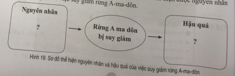 Hãy xếp các cụm từ trên vào sơ đồ theo mẫu sau để thể và hậu quả của việc suy giảm rừng A-ma-dôn.