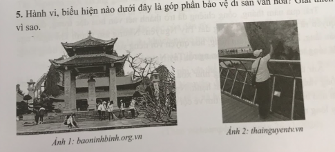 5. Hành vi, biểu hiện nào dưới đây là góp phần bảo vệ di sản văn hoá? Giải thích vì sao.