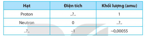2.5. Hãy viết tên, điện tích và khối lượng của các hạt cấu tạo nên nguyên tử vào chỗ trống để hoàn thiện bảng dưới đây.