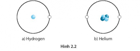 2.7. Mặt Trời chứa chủ yếu hai nguyên tố hoá học là hydrogen (H) và helium (He) Hình 2.2 biểu diễn một nguyên tử hydrogen và một nguyên tử helium.