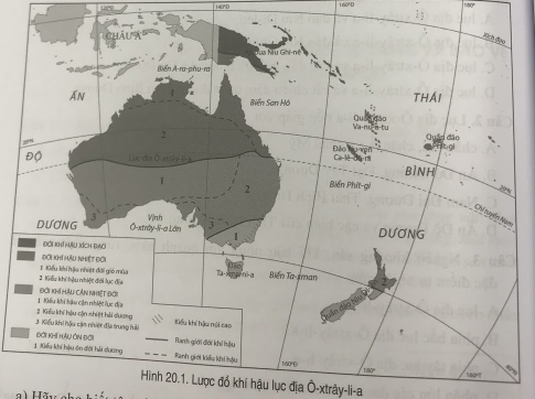 a) Hãy cho biết tên các đới và kiểu khí hậu ở lục địa Ô-xtrây-li-a.