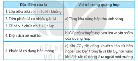 22.6. Ghép đặc điểm của lá phù hợp với vai trò trong quang hợp.