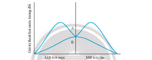 29.10. Hình bên dưới biểu diễn quá trình thoát hơi nước của một cây trưởng thành sống trong điều kiện khô hạn. Hãy xác định đường cong nào biểu diễn quá trình thoát hơi nước qua khí khổng. Giải thích.