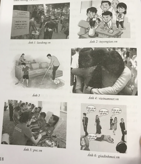 1. Quan sát những hình ảnh dưới đây và cho biết hình ảnh nào nói về sự quan tâm, cảm thông và chia sẻ.