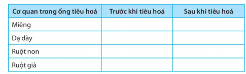 31.8. Dựa vào những hiểu biết của em về sự biến đổi thức ăn trong ống tiêu hoá của người, hãy hoàn thành bảng theo mẫu sau và rút ra nhận xét về sự phổi hợp hoạt động của các cơ quan trong ống tiêu hoá.