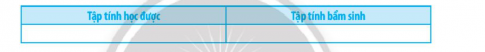 33.10. Hãy sắp xếp các tập tính dưới đây vào bảng để phân biệt tập tính học được và tập tính bẩm sinh.