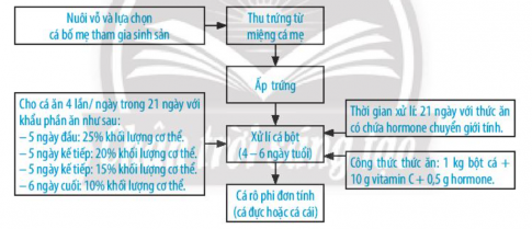38.13. Quan sát sơ đồ dưới đây và cho biết con người đã chủ động điều khiển những yếu tố nào để thu hoạch được đàn cá rô phi đơn tính.