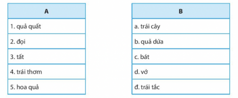 1. Nối các từ ngữ có ý nghĩa giống nhau ở 2 cột.